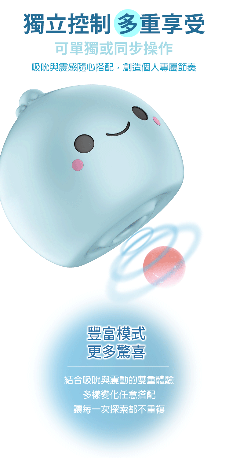 療癒外型設計|小巧可愛的麻吉造型,粉嫩圓滾,搭配萌趣笑臉,讓它不只是情趣小物,更是能隨時療癒心情的貼心陪伴。