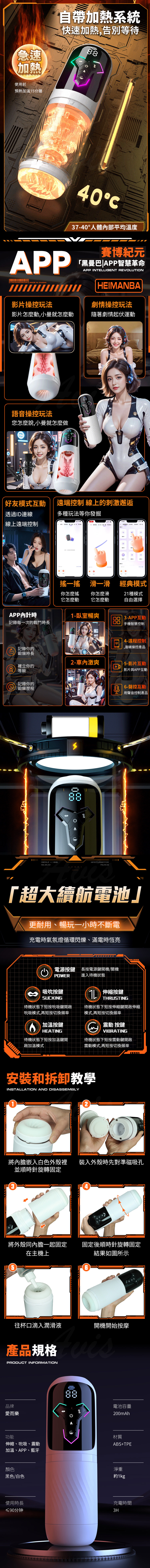 商品名稱:白曼巴|吸吮 伸縮 震顫|狂暴電動飛機杯 標準款